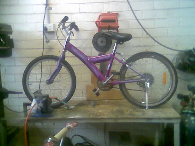 So my boss, who heartily endorses eccentrification ventures such as this, while he waits for his V8 to come back from the rebuild, and searches for a VW body to put it in, has children. Like most children, they have old pushbikes. Donor bikes. Yay donor bikes!