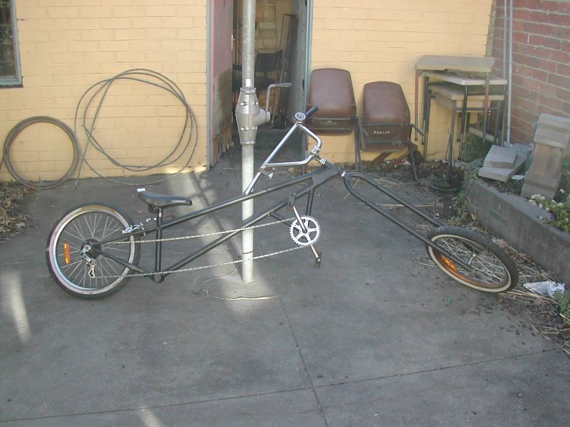 So I've been tinkering a little - added pedals and a chain, taken it for a brief shakedown. Painted it black.