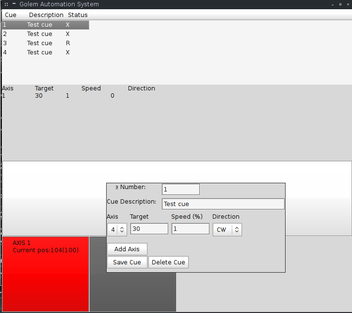 My current CrunchBang box does odd things to the window decoration on the popup stuff, but this is the cue edit interface. Pretty self explanatory, really.