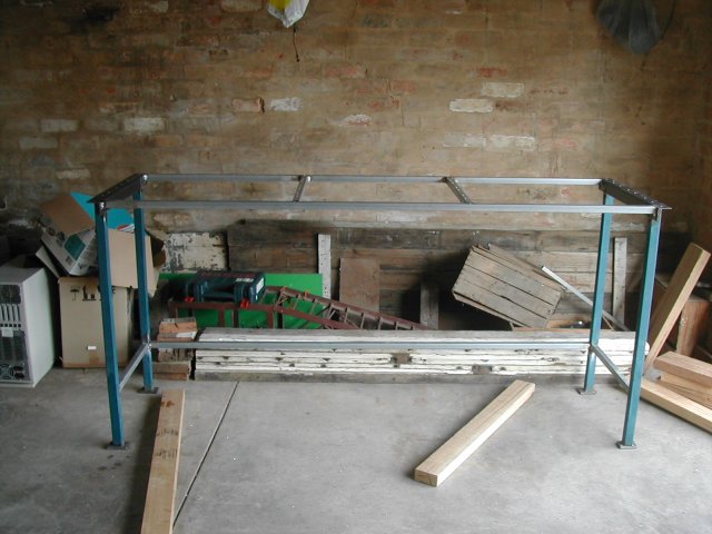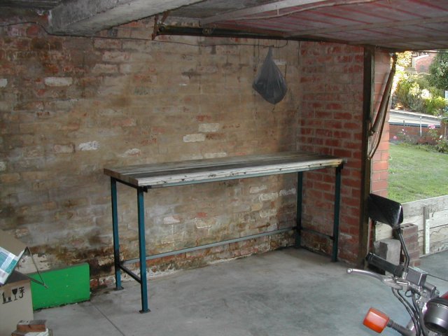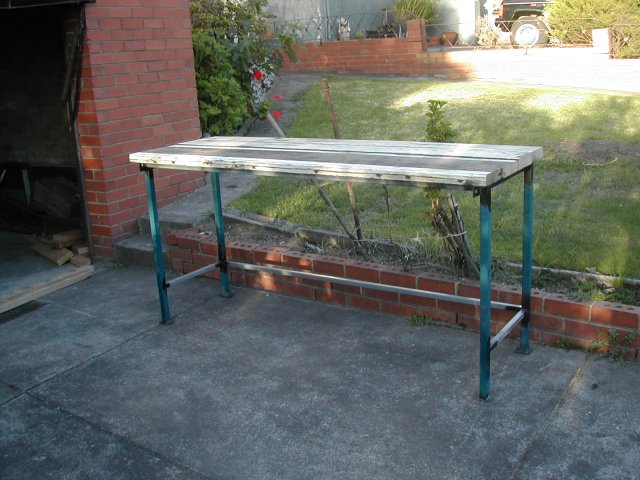 Stand it up, bolt some wood on it, call it done, I reckon. Take particular notice of the background in this photo, there will be a test later. There are no close-ups of my skanky welding. Suffice it to say nothing caught fire, and it's still all in one piece, even after I sat on it.